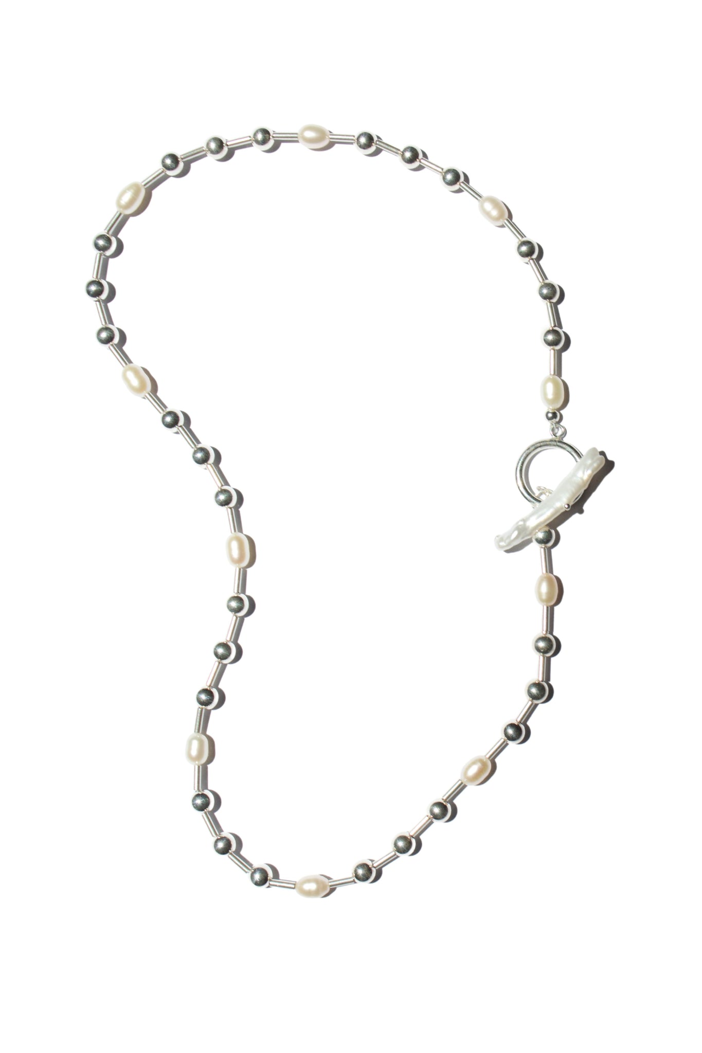Pearls & sterling silver beads with a Biwa clasp by Yam