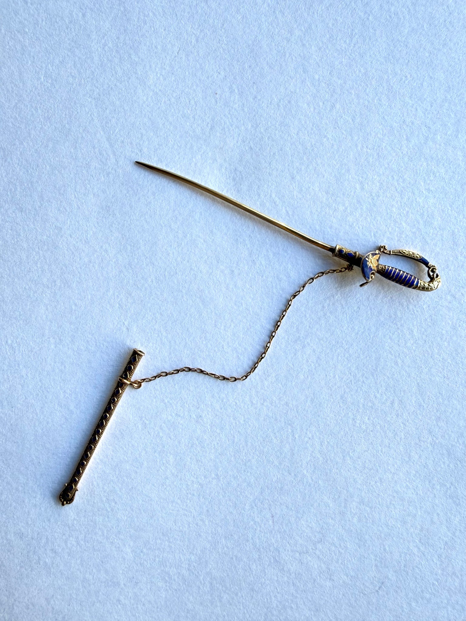 ANTIQUE GOLD AND ENAMEL SWORD PIN