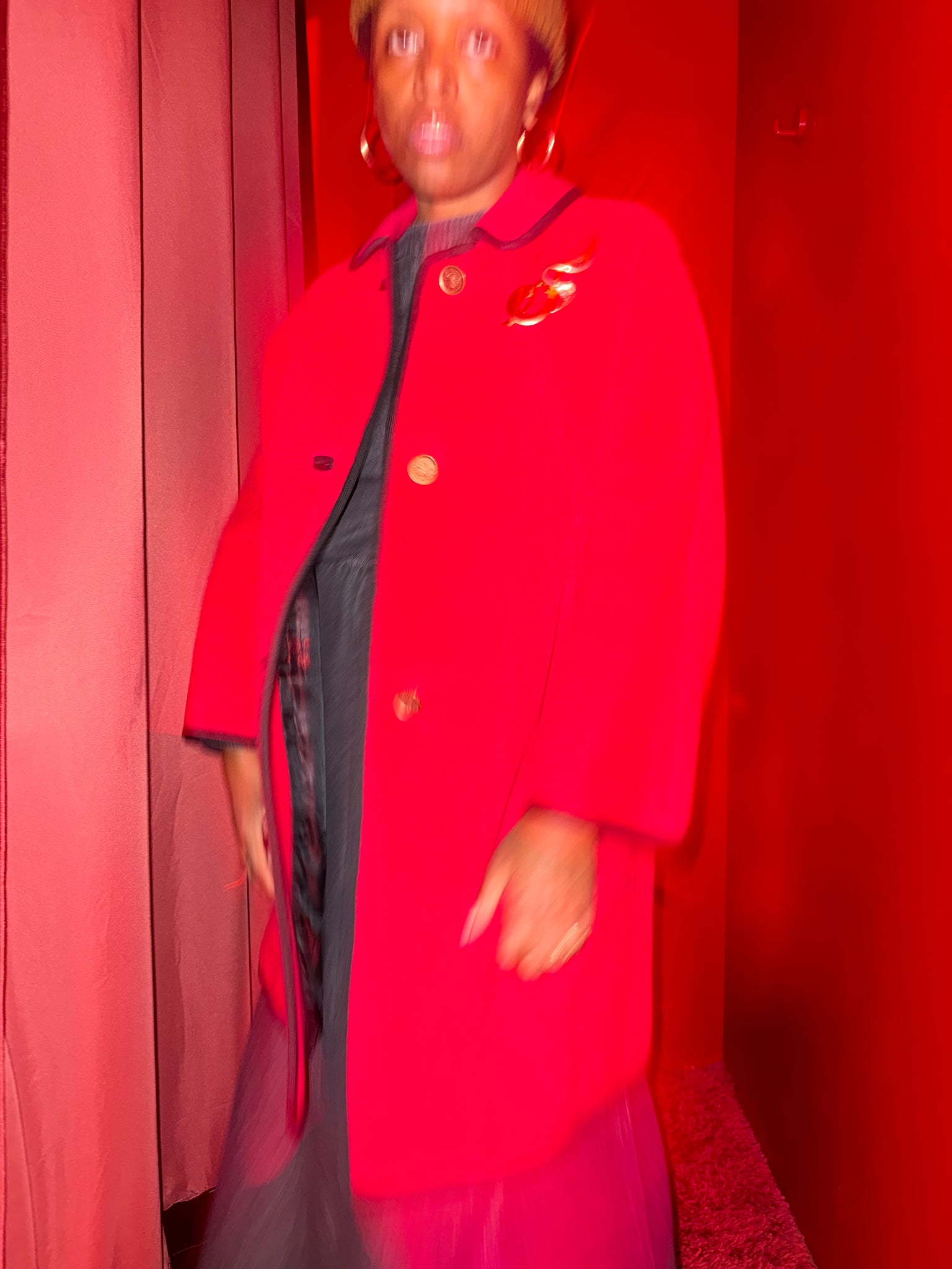 Red Peacoat with Black Piping